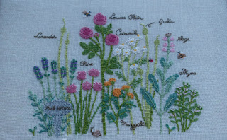 Due to the eyes surgery, I prefer those days to work on Aïda on a bib I'm stitching for a baby.
